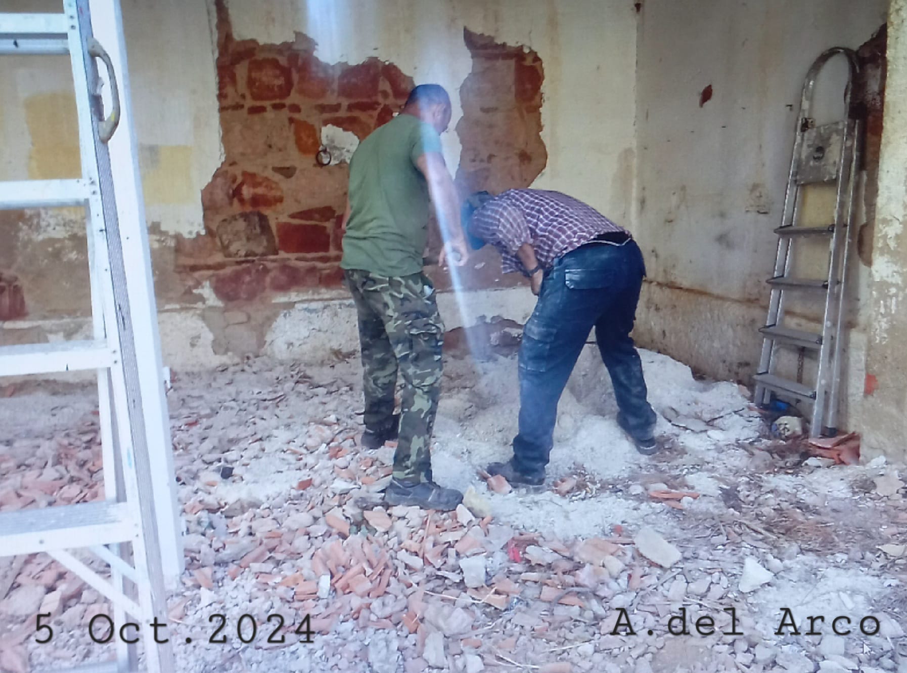 La Hermandad continua con su trabajo de terminar las obras pendientes de nuestra Sede, ahora estamos limpiando uno de los patios del Cuartel, colocando techo para guardar enseres de la Asociación.
